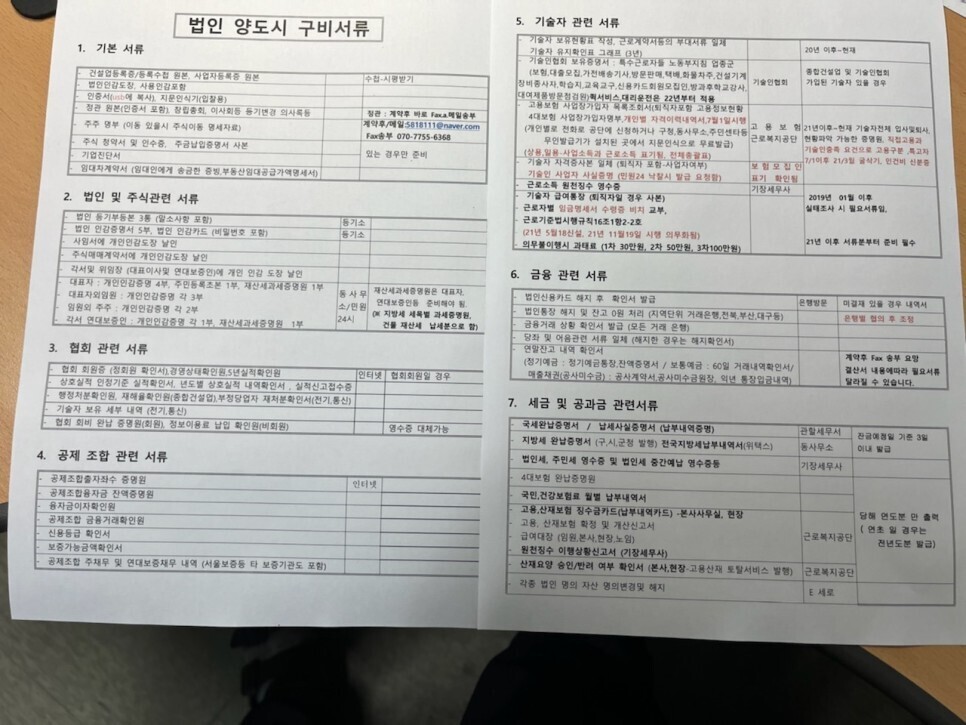 1. 자본금: 1억 5천만 2. 사무실: 반년 이상