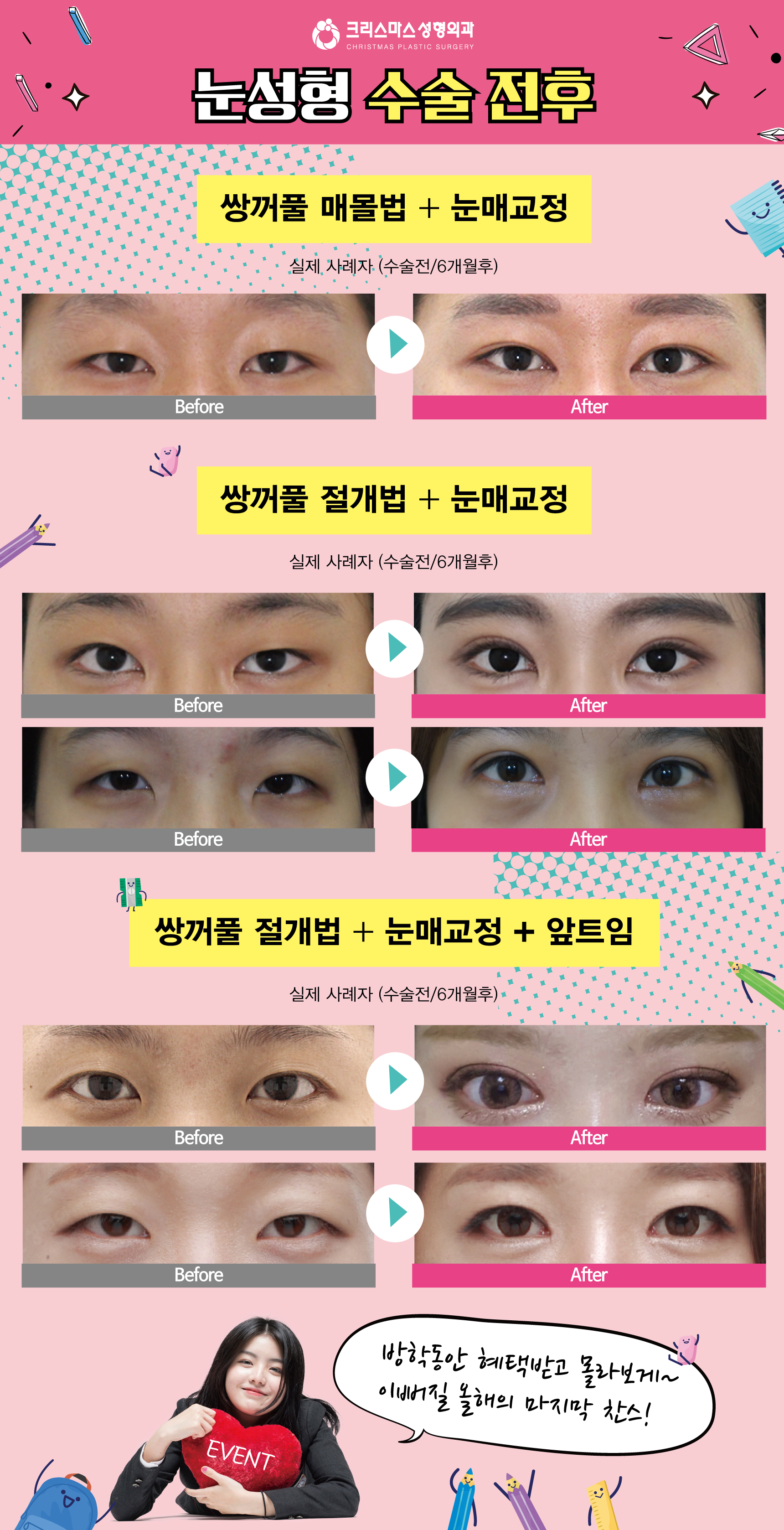 이런 증상을 그대로 방치하면 눈을 뜰 때 이마나 눈썹의 힘으로 깨어나게 되고 이마나 눈썹 주위에 주름이 생겨 기존 증상이 더 확장될 수 있습니다.따라서 눈가 교정 수술은 빠른 시일 내에 정확한 진단으로 해결하는 것이 여러 가지로 좋습니다.눈가 교정을 잘하는 병원의 특징은 이러한 안검하수 증상을 해결하는 동시에 얼굴 전체 이미지에 올바른 변화를 만들어 냅니다.단순히 증상만 개선하는 것이 아니라 얼굴 전체의 균형을 균형 있게 맞추면서 자연스러운 이목구비 형태를 만들어갑니다.