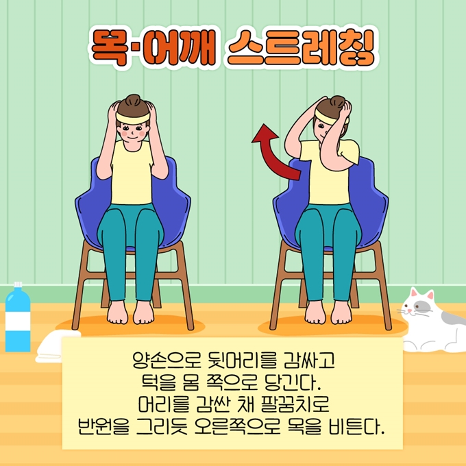 벽에 기대어 서요.2. 어깨가 뜨지 않는 상태에서 다리와 무릎은 벽에 붙이지 않고 약간 구부립니다.3. 팔을 벽에 붙인 채 살짝 들어 위아래로 쓸어 천천히 내려줍니다. AB 슬라이드