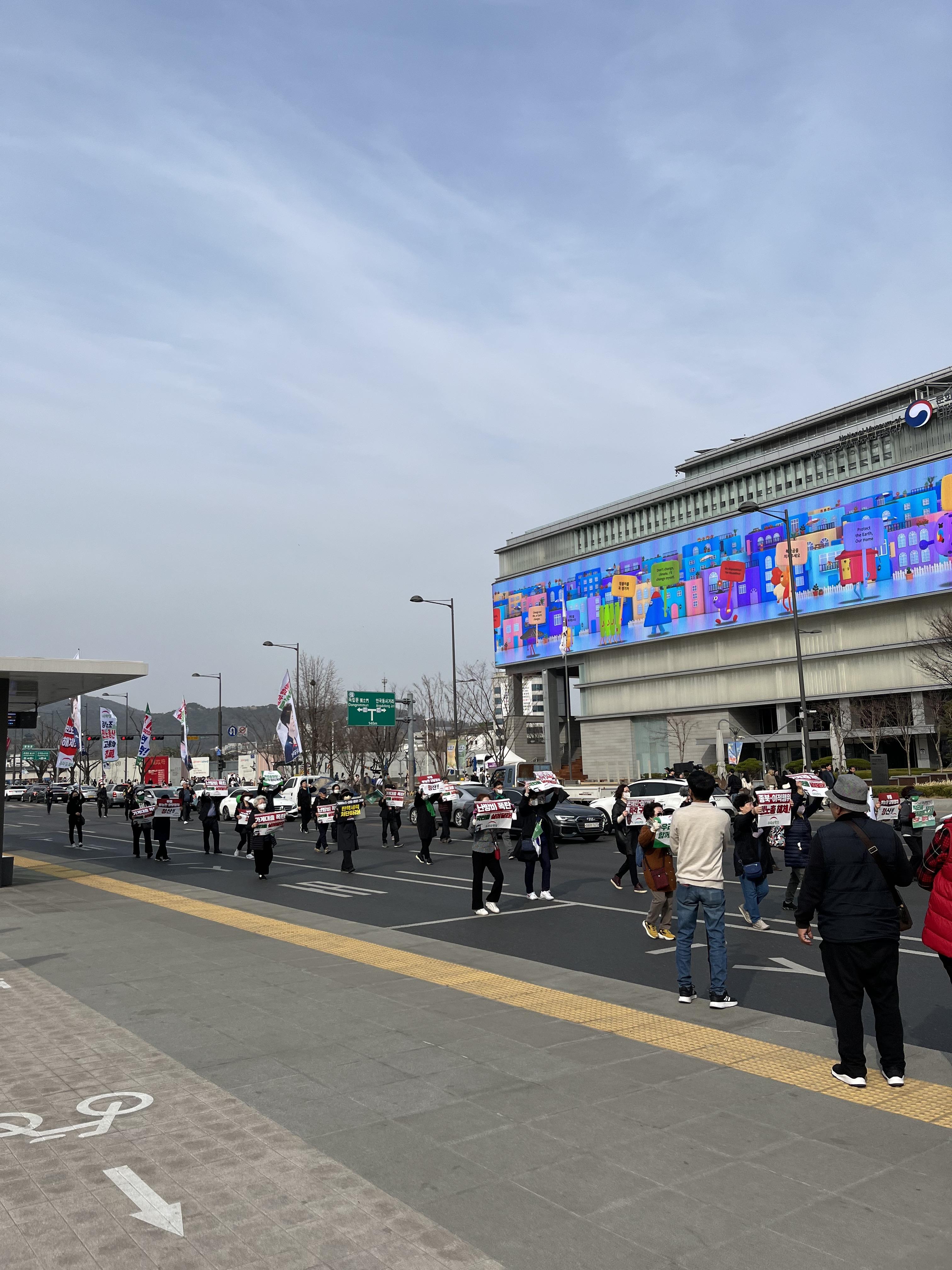 광화문에서 박근혜 석방 시위대를 만났다.