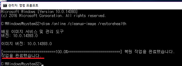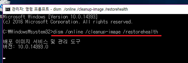 * 명령(복사하기 쉬움): dism /online /cleanup-image /restorehealth