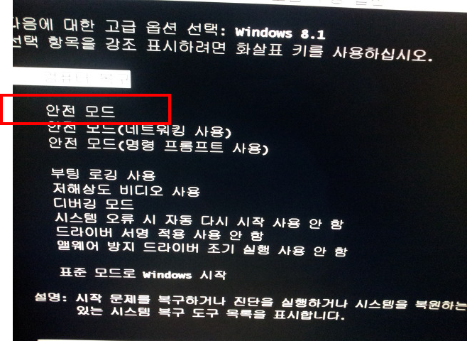 처음 부팅할 때 안전 모드로 들어가는 방법은 다음과 같습니다.