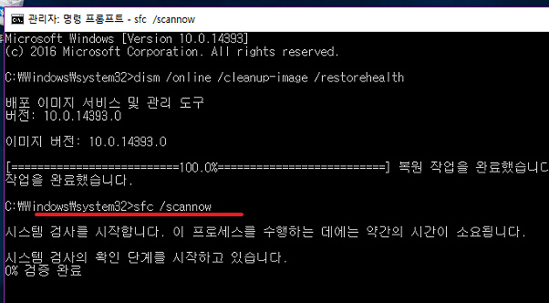 * 명령: sfc /scannow