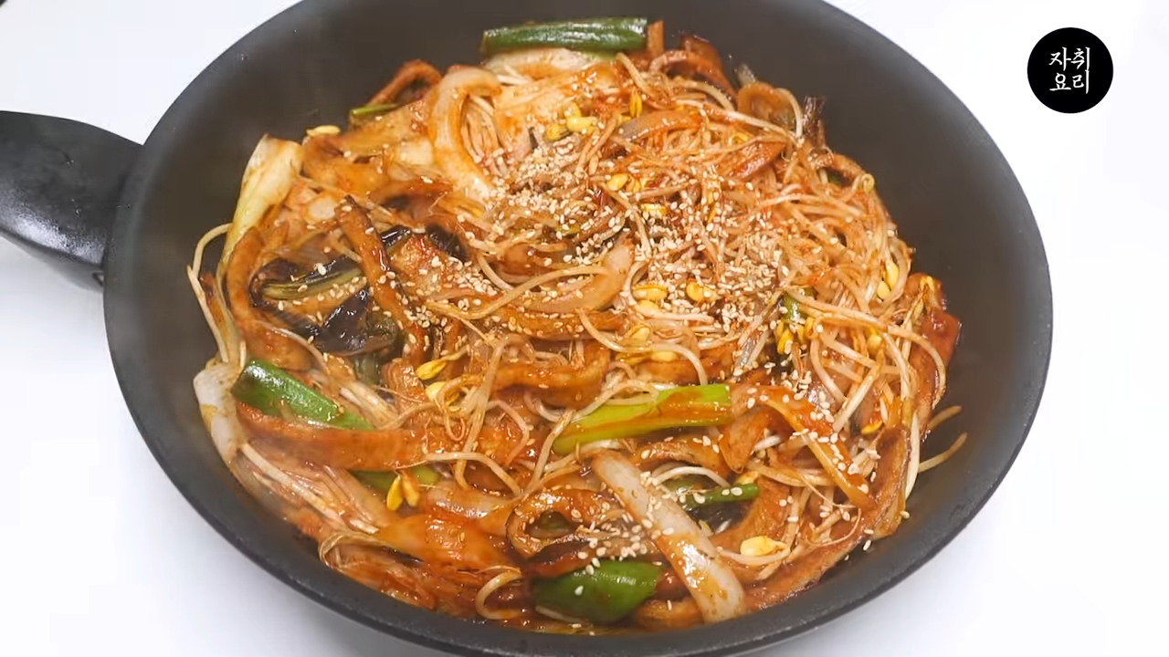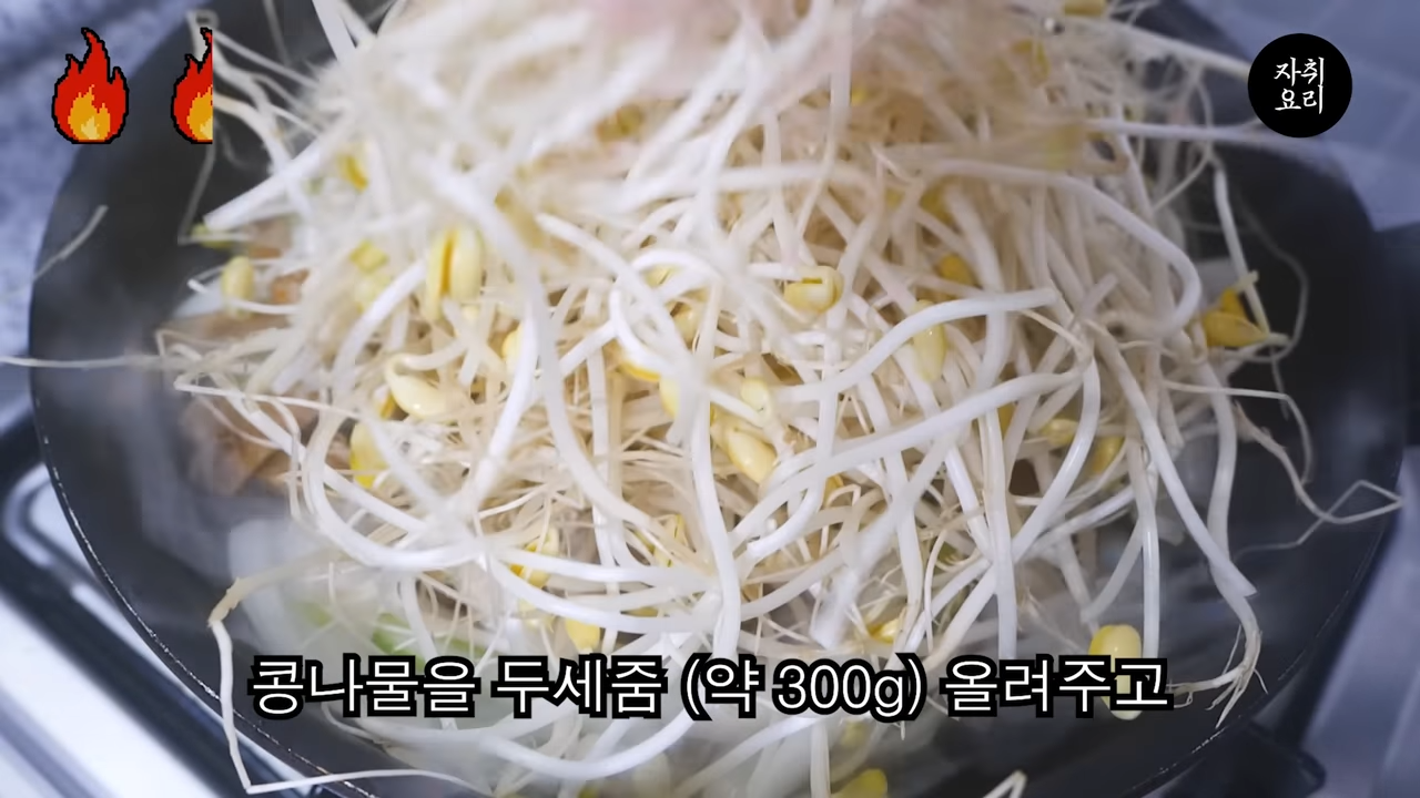콩나물과 양념장을 넣고 볶는다.