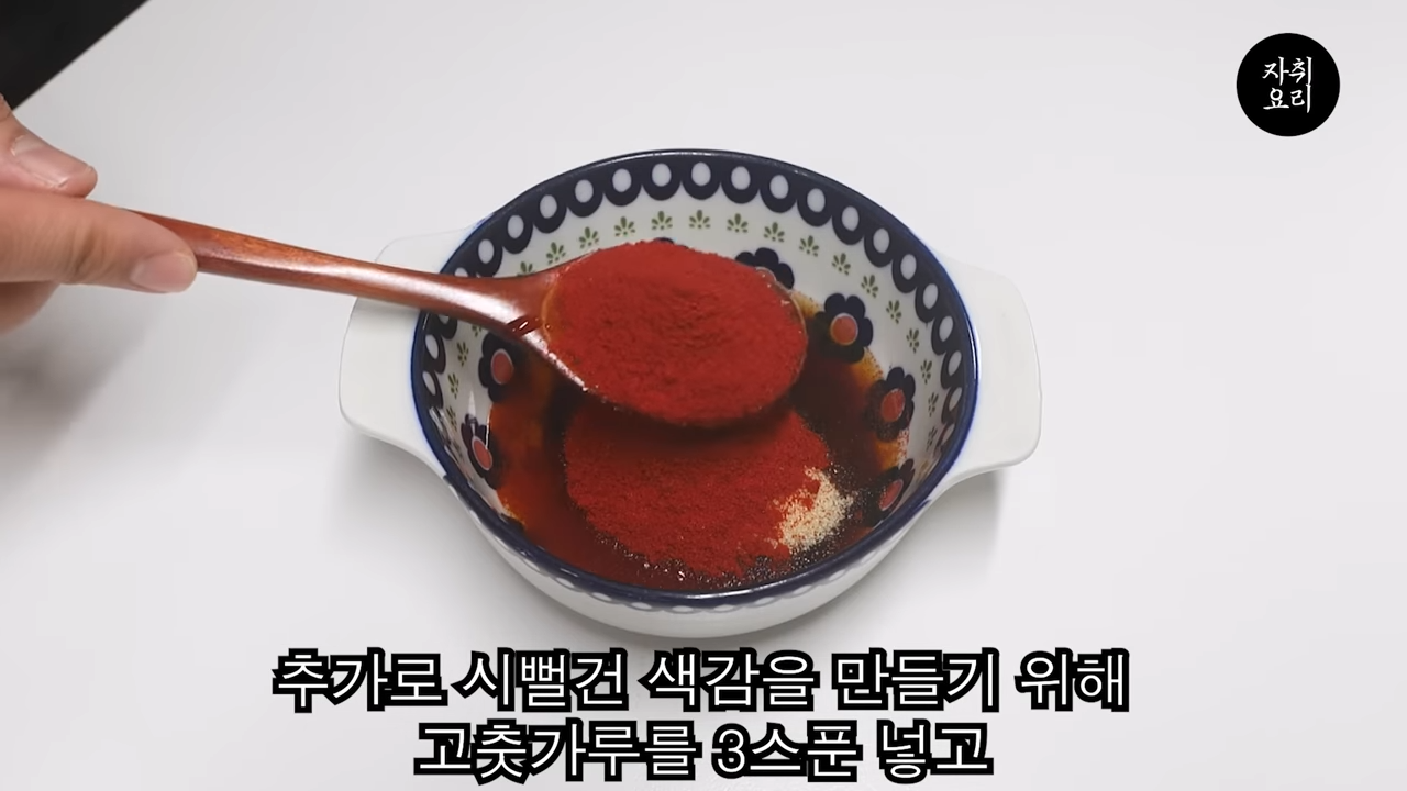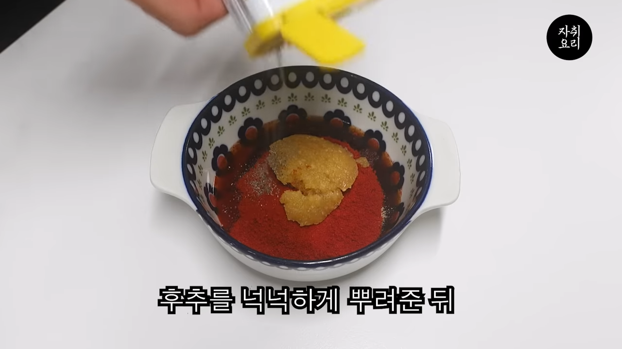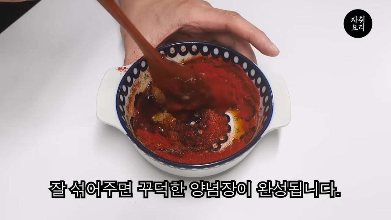 양념장 – 굴소스 2큰술, 멸치액젓 1큰술, 설탕 2큰술, 파프리카가루 3큰술, 다진마늘 1큰술, 후추