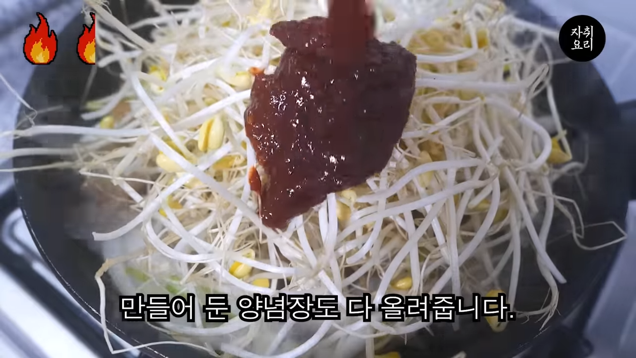 콩나물과 양념장을 넣고 볶는다.
