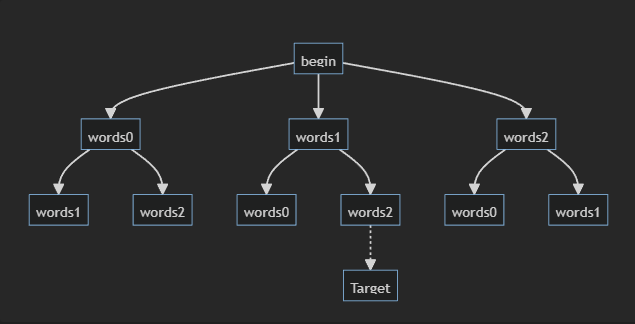 void DFS(int count, const string& cur, const string& target, const vector<string>& words)